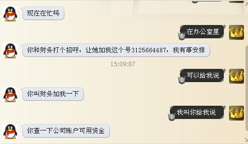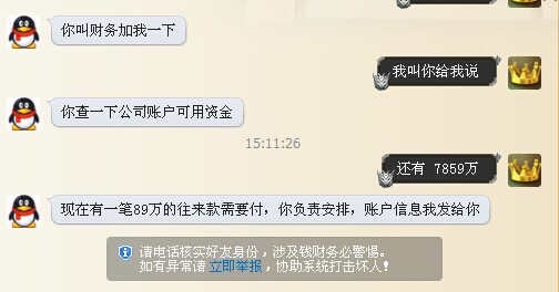 于是就加了那個(gè)的QQ,騙子一本正經(jīng)的冒充老板,問財(cái)務(wù)誰(shuí)上班。